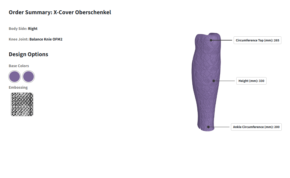 Gestalten Sie in wenigen Klicks Ihr individuelles Prothesencover – passgenau, einzigartig und sofort bestellbar.